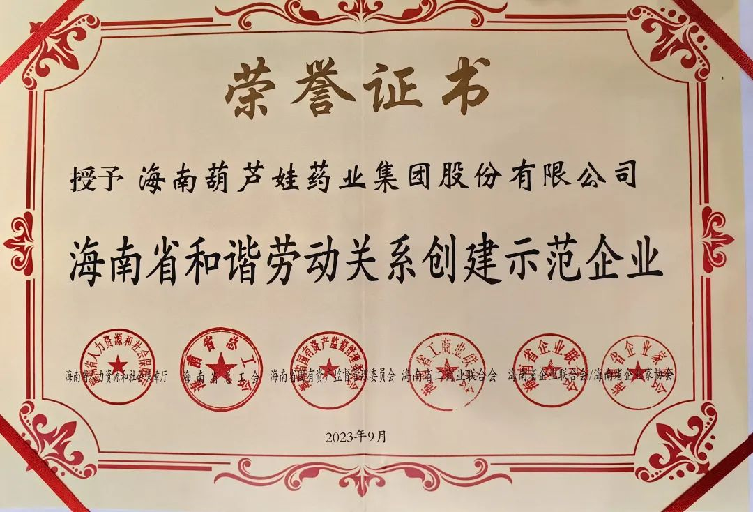 yp街机药业集团获评“海南省和谐劳动关系创建示范企业”